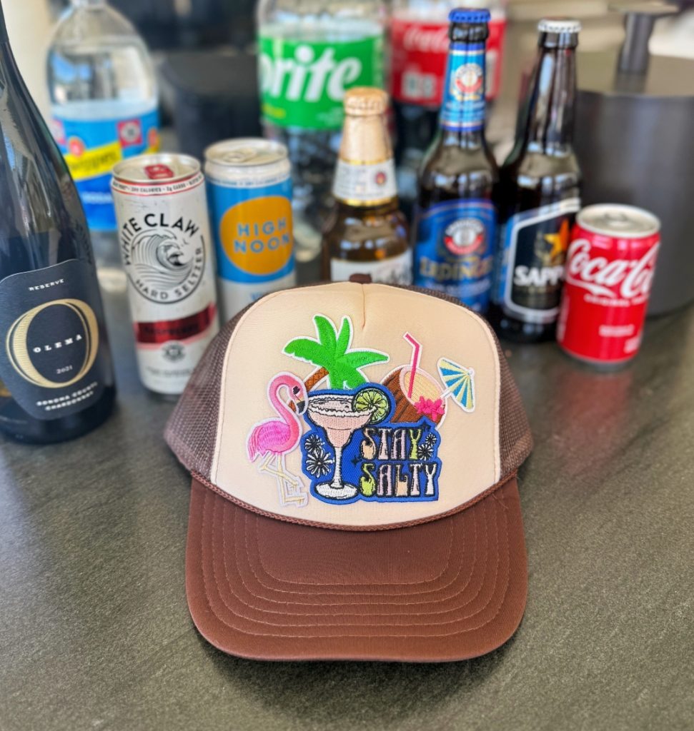 A mobile hat bar makes sense here for practical reasons, not just aesthetic ones. Summer guests genuinely like receiving something wearable that has a purpose. A custom trucker hat or light rancher style can work as a style piece and a sun-ready accessory. That makes the interaction feel less like a novelty and more like a thoughtful part of the event design.
